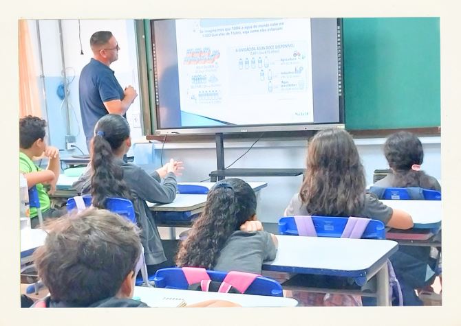 Desenvolvido pelo Núcleo de Educação Ambiental, o projeto ganhou força com a retomada das aulas presenciais após a pandemia, levando palestras educativas a alunos com o objetivo de estimular o senso crítico sobre temas como consumo consciente da água, descarte correto dos resíduos, importância dos sistemas de esgotamento sanitário e preservação ambiental.